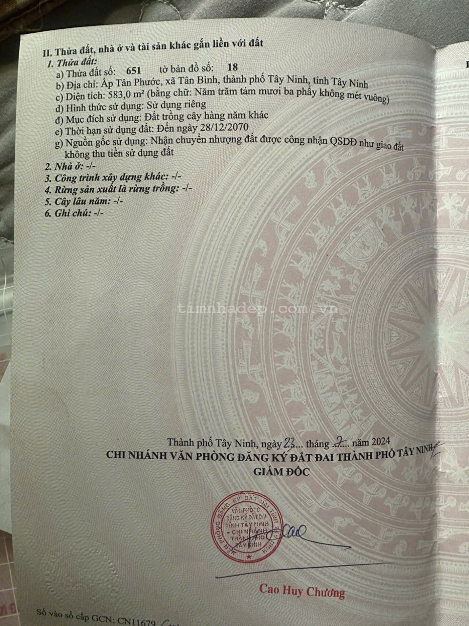 CHÍNH CHỦ CẦN BÁN GẤP LÔ ĐẤT TÂY NINH